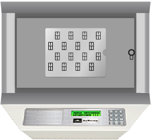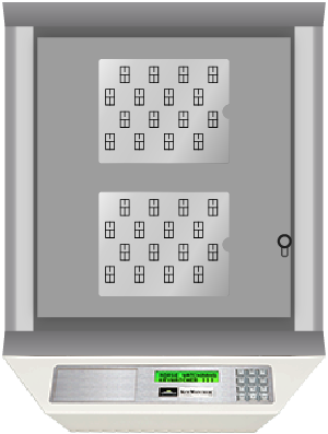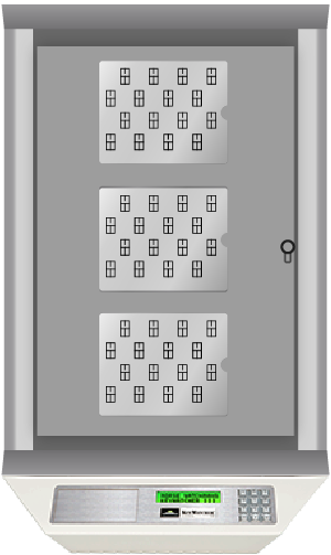KeyBank key slots do not lock individually, locking cabinet door not shown.